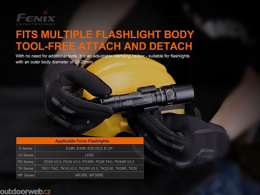 Use your flashlight as a headlamp on your helmet! With the specially designed Fenix ALD-05 strap you can use your existing powerful flashlight on your work, firefighting, rescue or other helmet. It will free your hands and make it easier to move around on construction sites, in the outdoors when climbing or caving.
