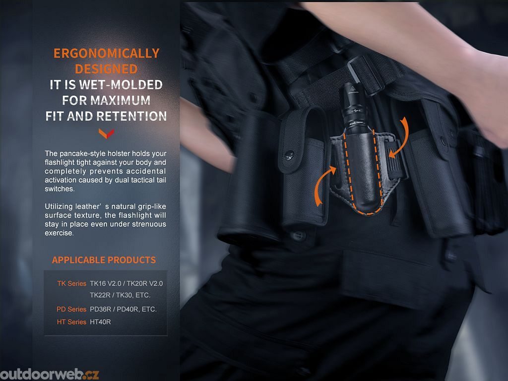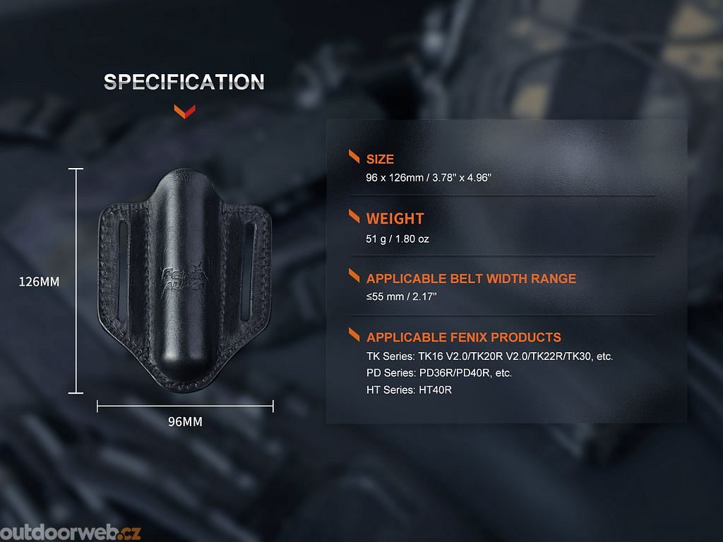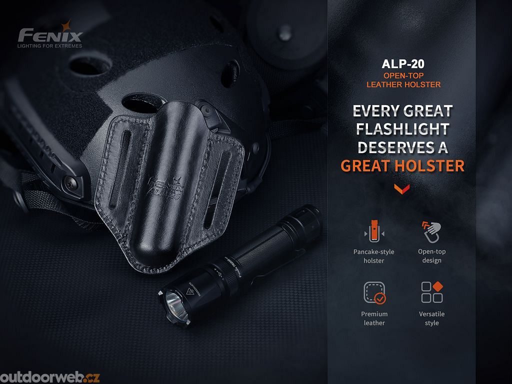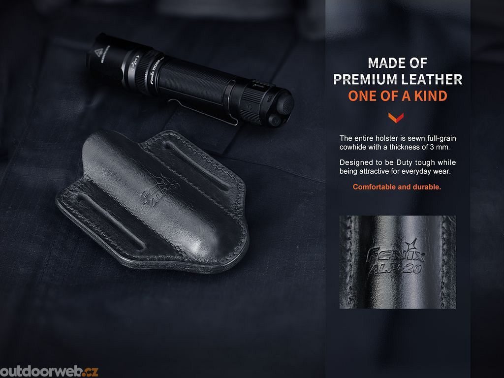 The Fenix ALP-20 flashlight case is made of premium leather. The case is suitable for flashlights such as Fenix PD36R PRO, PD36 TAC, TK16 V2.0, TK20R V2.0, TK22 TAC and other flashlights with inch diameter body and clip.