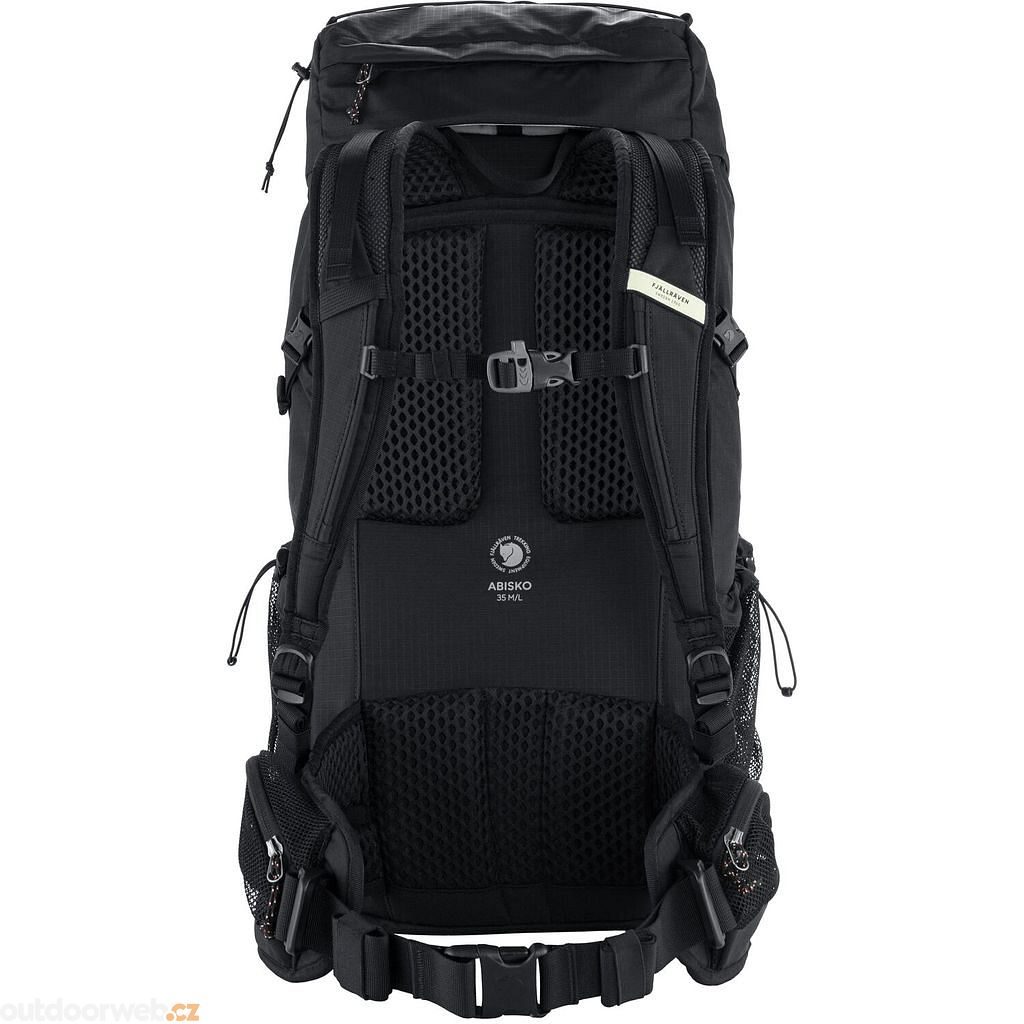 The Abisko Hike 35 is a versatile backpack ideal for hut-to-hut hiking and light trekking. This backpack is made from 100% recycled nylon and has an adjustable back system with ventilated mesh on the back panel, shoulder straps, and hip belt.It has a main compartment with top loading and front zipper, and the top lid with drawstring has two zippered pockets. Inside the main compartment are two pockets and an internal zippered pocket that is easily accessible from the front opening and the top. Two oversized side pockets are great for carrying bottles, and there are also two pockets on the supportive hip belt. There is a holder for trekking poles or an ice axe on the front of the backpack. Compatible with a hydration system. A rain cover is included. All fabrics—main fabric, reinforcements, and lining—are made from 100% recycled nylon.Adjustable back system with back length and ventilation mesh on the back, shoulder straps, and waist belt.