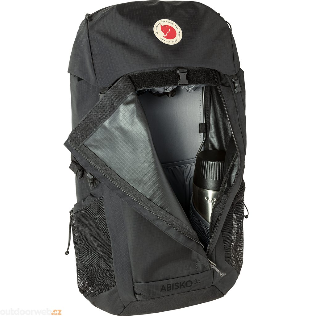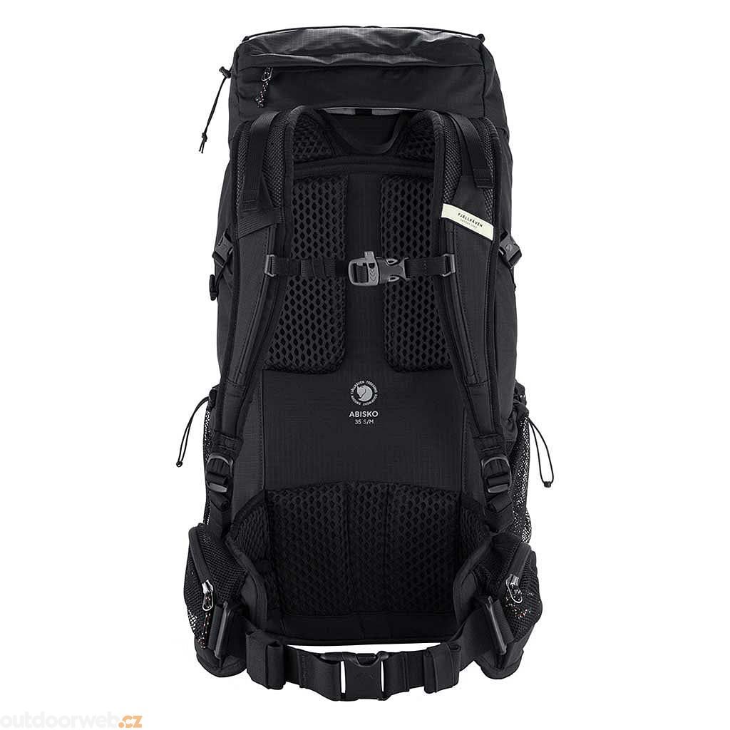 The Abisko Hike 35 is a versatile backpack ideal for hut-to-hut hiking and light trekking. This backpack is made from 100% recycled nylon and has an adjustable back system with ventilated mesh on the back panel, shoulder straps, and hip belt.It has a main compartment with top loading and front zipper, and the top lid with drawstring has two zippered pockets. Inside the main compartment are two pockets and an internal zippered pocket that is easily accessible from the front opening and top. Two oversized side pockets are great for carrying bottles, and there are also two pockets on the supportive hip belt. There is a holder for trekking poles or an ice axe on the front of the backpack. Compatible with a hydration system. A rain cover is included. All fabrics—main fabric, reinforcements, and lining—are made from 100% recycled nylon.Adjustable back system with back length and ventilation mesh on the back, shoulder straps, and waist belt.