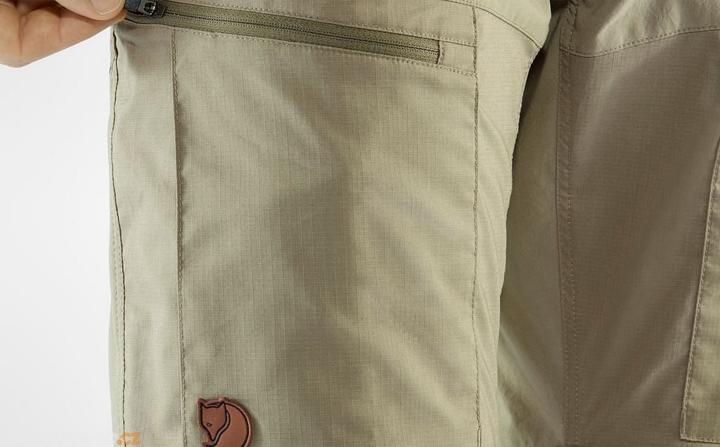 - Zippers just above the knees convert pants to shorts.