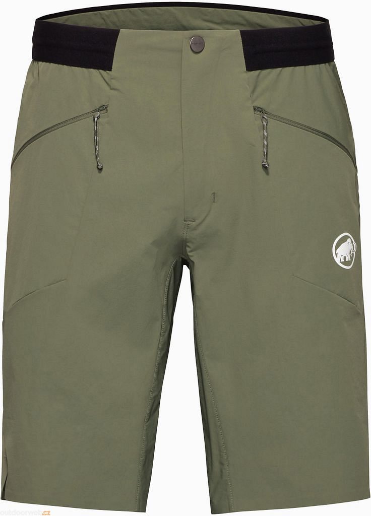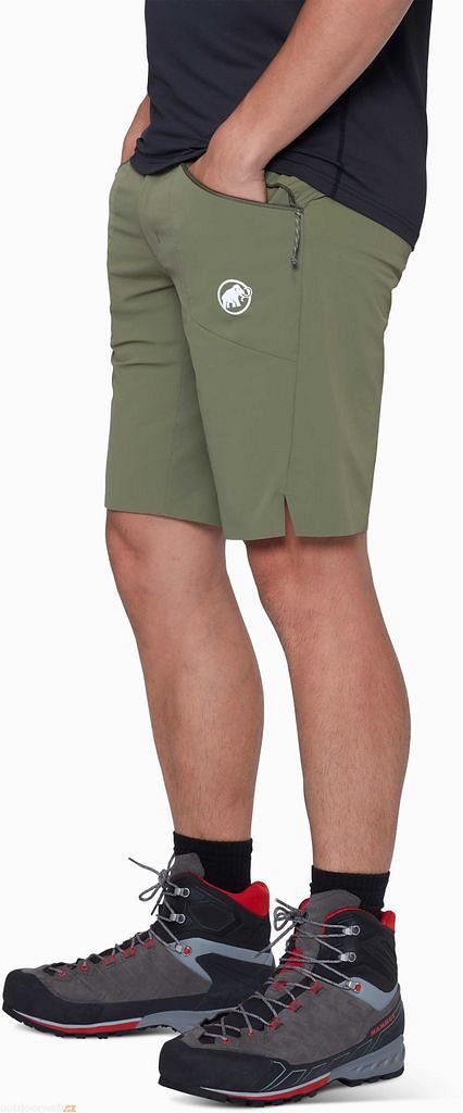 Men's shorts Aenergy Light SO Shorts Men from Mammut are made from lightweight, highly durable softshell fabric that ensures freedom of movement. The material is abrasion-resistant. The elastic waistband with a drawstring provides a great fit. The two zippered pockets are easily accessible even when wearing a climbing harness or backpack. These shorts are ideal for hiking and mountaineering.