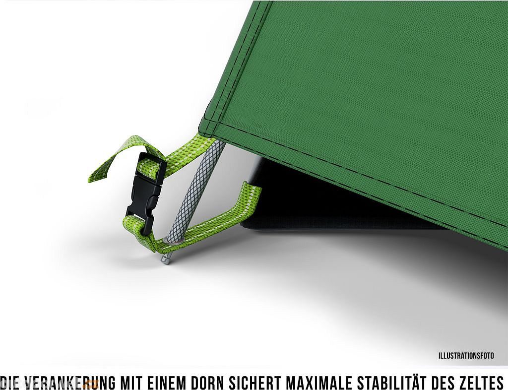 Accessories: steel stakes, repair kit, storage net