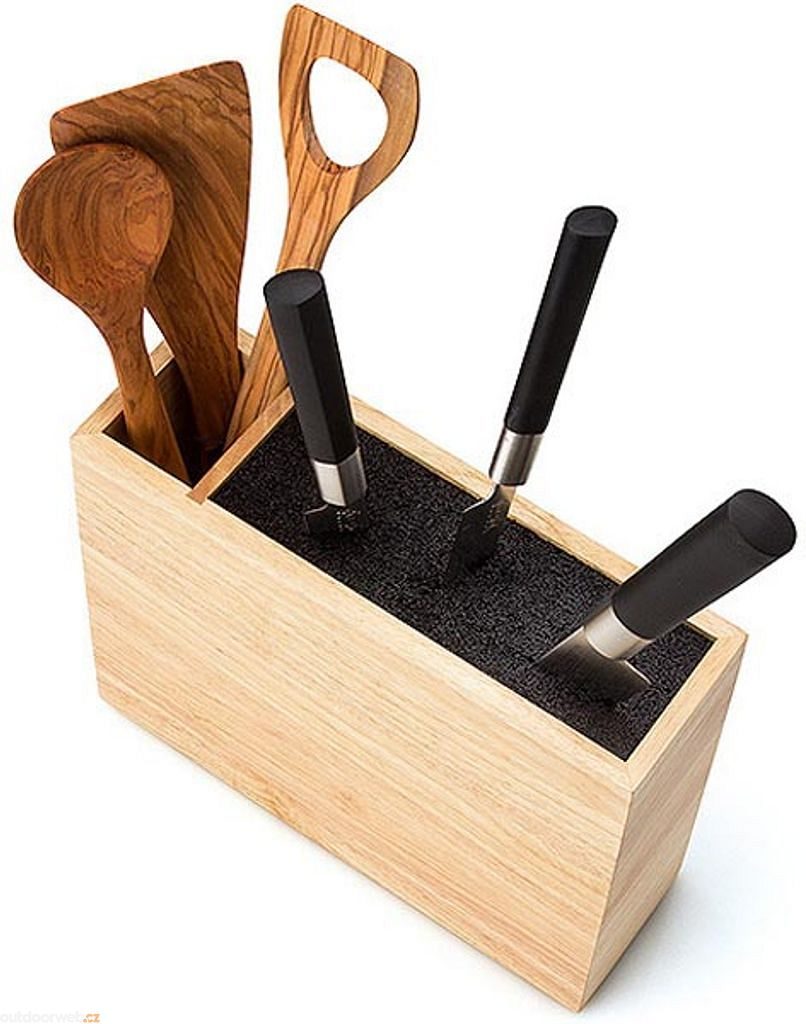 This versatile and elegant knife block made of high-quality rubberwood offers an innovative solution for storing your kitchen tools. Thanks to the flexible plastic insert, you can flexibly store up to 10 knives according to your needs. In addition, the block is equipped with a practical compartment for kitchen utensils, making it a versatile kitchen helper.