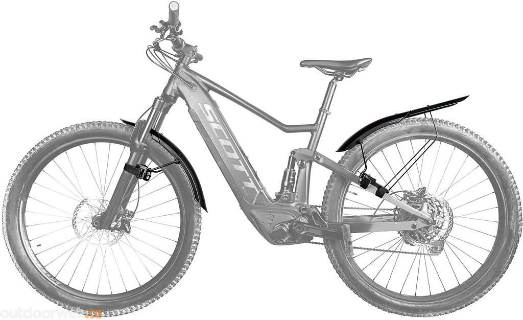 MTB mudguard set with quick-release Velcro fasteners.