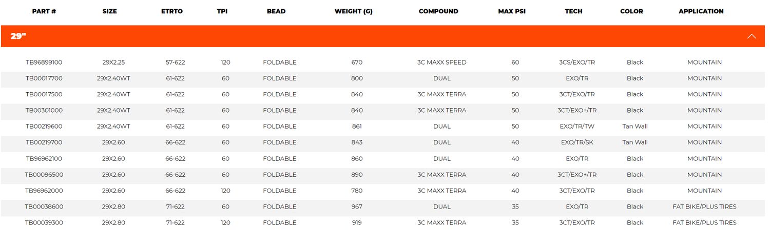 - Wide Trail (WT) dimensions are optimized for 35mm inner width rims.