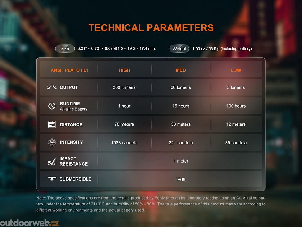 Weight: 59.3 g (including alkaline battery)