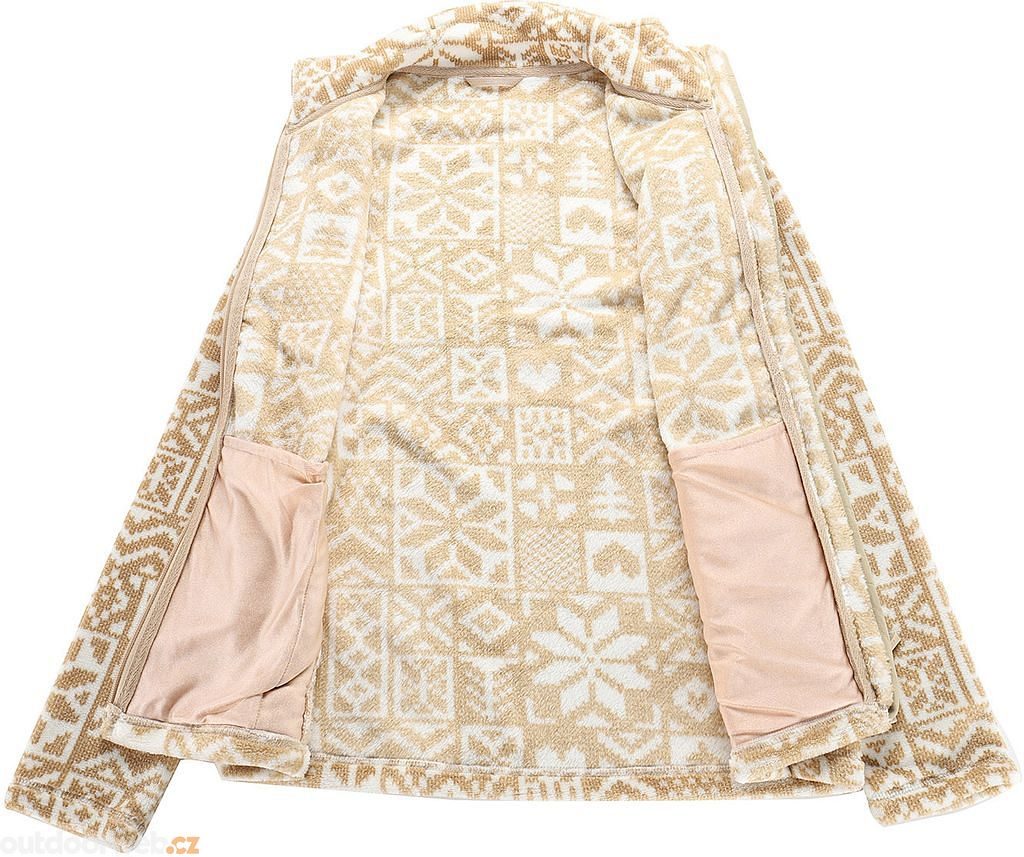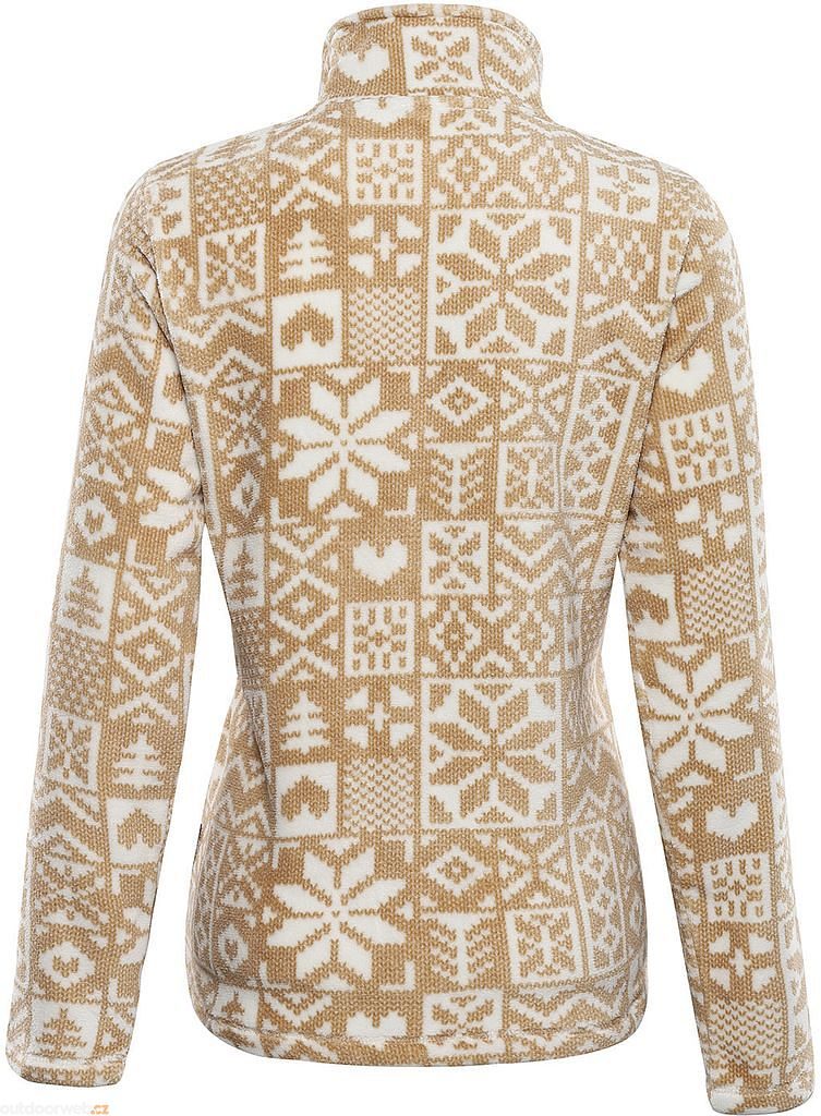 The specially designed LADIES SIZE cut offers a perfect fit for the female body while maintaining maximum mobility. Elegant Regular fit lineFunctional high collar. Signature contrasting zipper. Subtle brand patch.Exclusive fleece material Stylish all-over pattern Specifications:Brand: ALPINE PRO