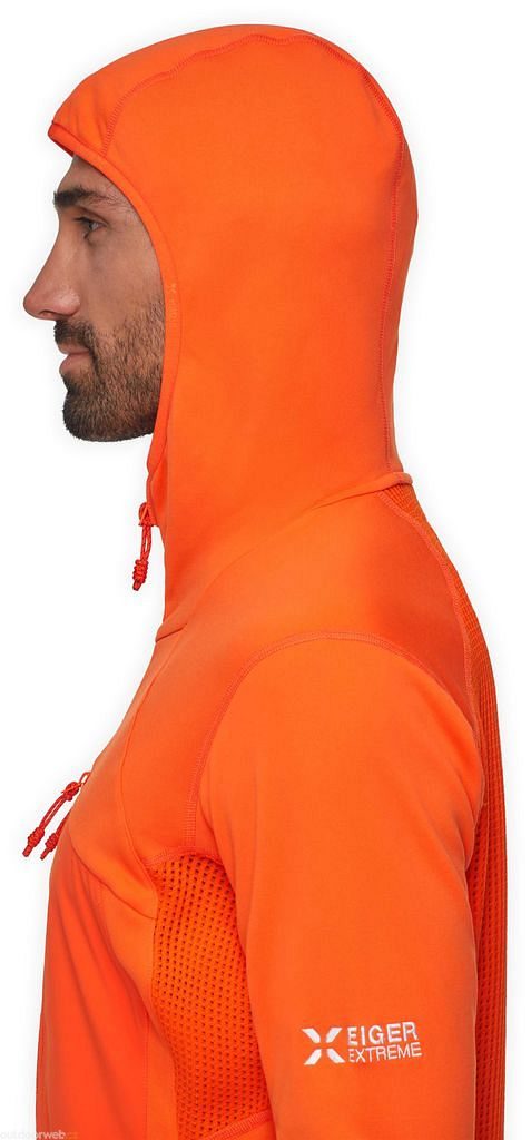 How to choose the right sizeA midlayer that perfectly balances thermal insulation, breathability, and durability. Tailored to the body for a perfect combination of two high-performance materials. Polartec® Power Dry® Mesh fabric with a unique open structure is used in areas with high perspiration under the arms and on the back to optimize airflow. Power Stretch® Pro™ fabric made from recycled nylon with 4-way stretch and abrasion resistance is used in exposed areas. Our design approach, tested by our athletes and made from recycled materials, maximizes performance with fewer resources and creates more environmentally friendly products for the most extreme conditions. The Eiger Nordwand Advanced ML Hooded Jacket pushes the boundaries of mid-layer performance and is ready for your next climbing project. less