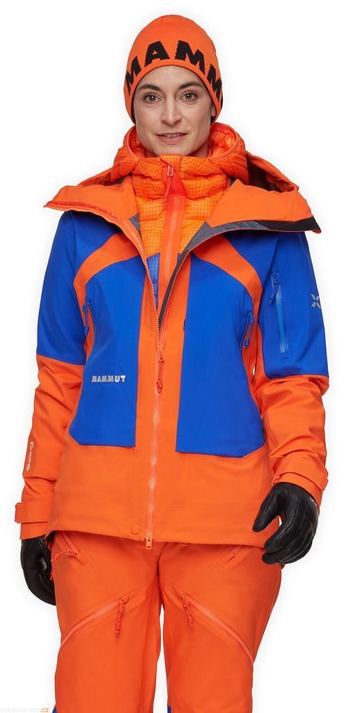 Three-layer GORE-TEX Pro with PFC-free DWR finish and reinforced seams provides superior waterproofing and breathability while maintaining high durability. - Women's mountaineering ergonomics