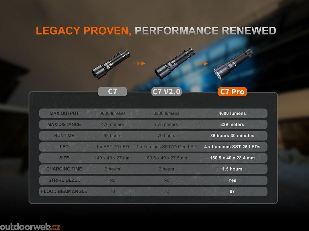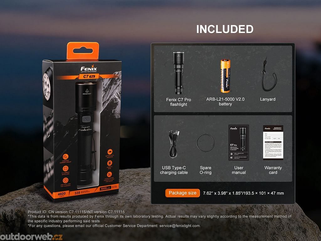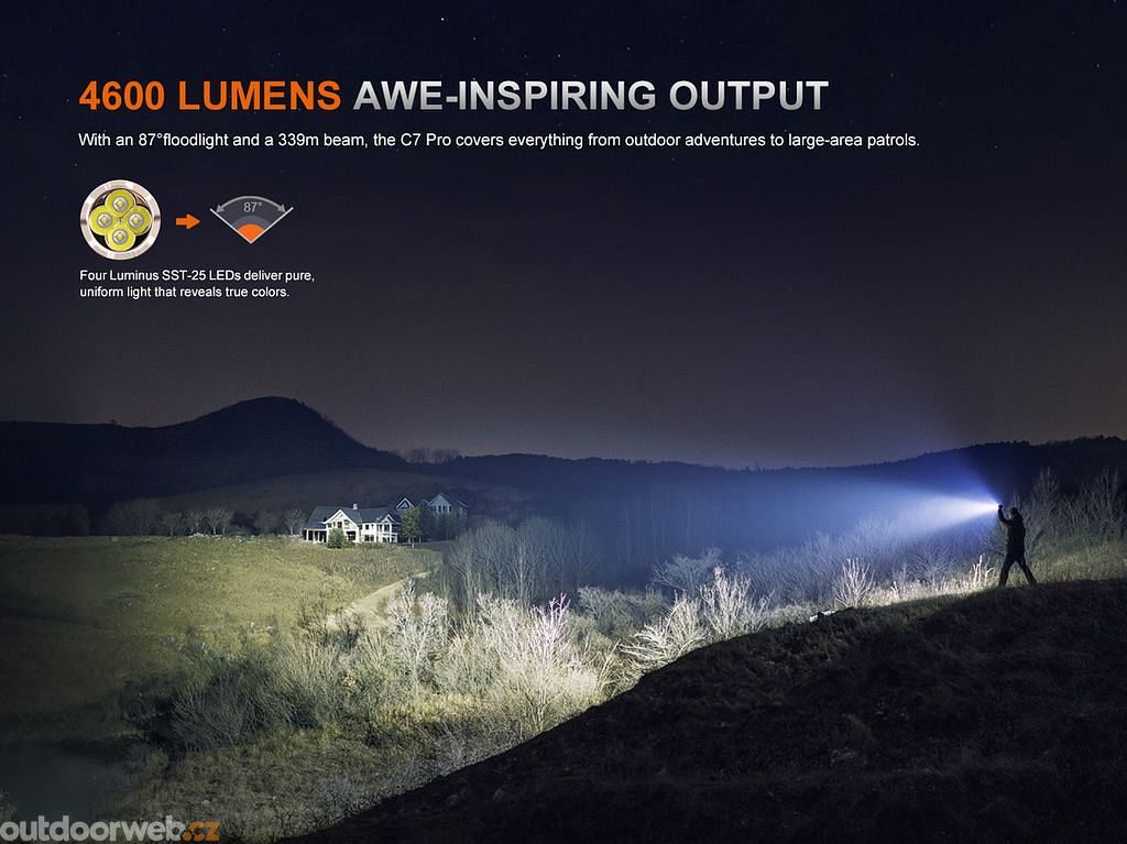 Fenix C7 PRO is a professional rechargeable torch for those who leave compromises at home. Extreme output of 4600 lumens, a beam distance of 339 metres and fast USB-C charging ensure you’re always ready for anything.