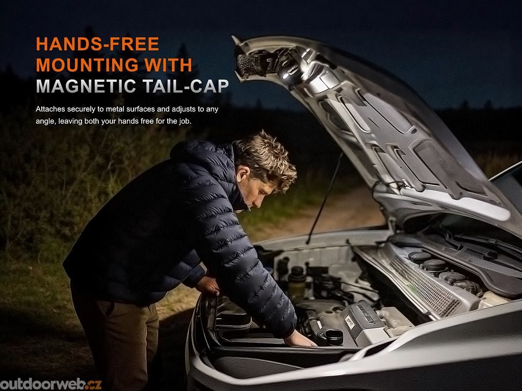 An all-metal body, IP68 waterproofing, a magnetic cap, and the option to use it as a handheld flashlight ensure reliability in every situation.