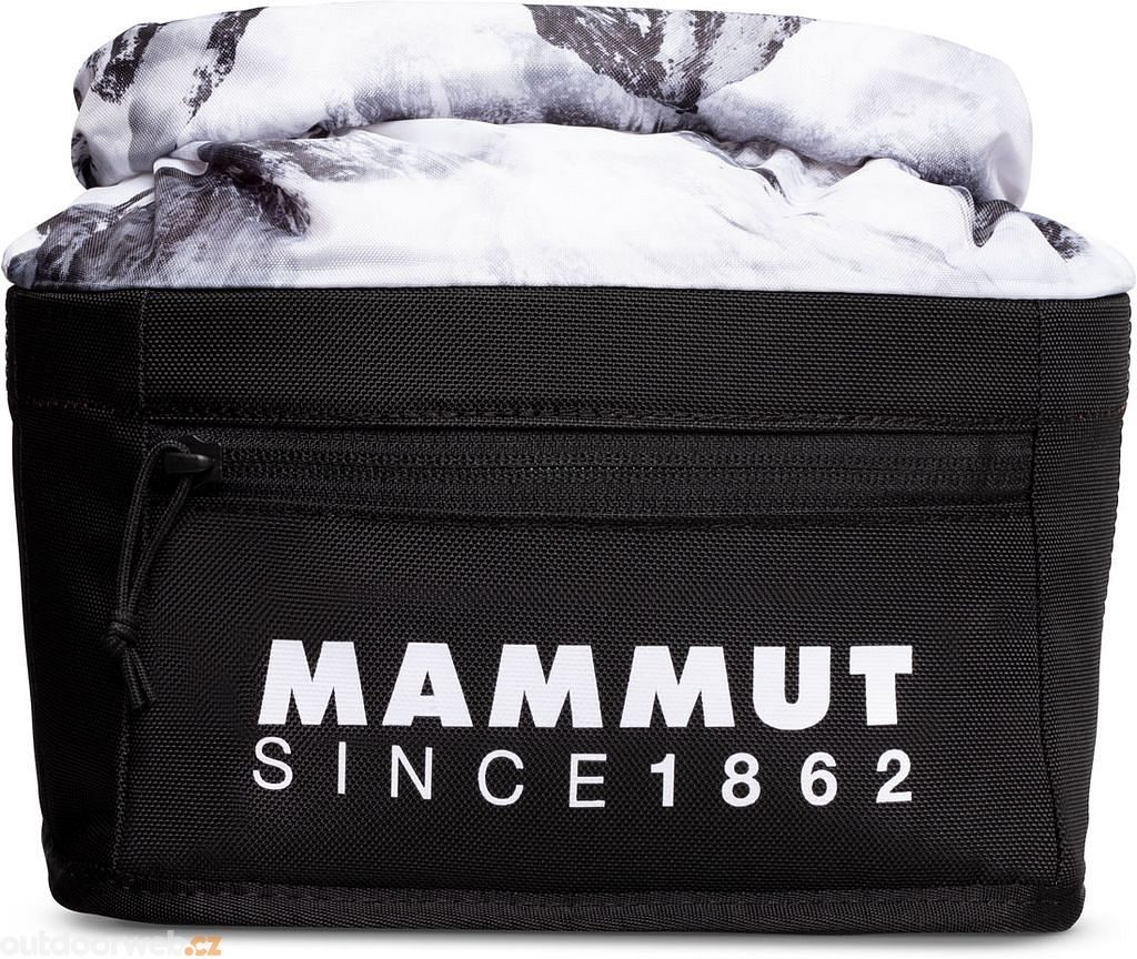 Large Mammut Boulder Cube Chalk Bag for magnesium for common bouldering. Thanks to the flat bottom it stands perfectly in place, does not tip over and does not fall off. With the strap you can easily carry the bag a little further.