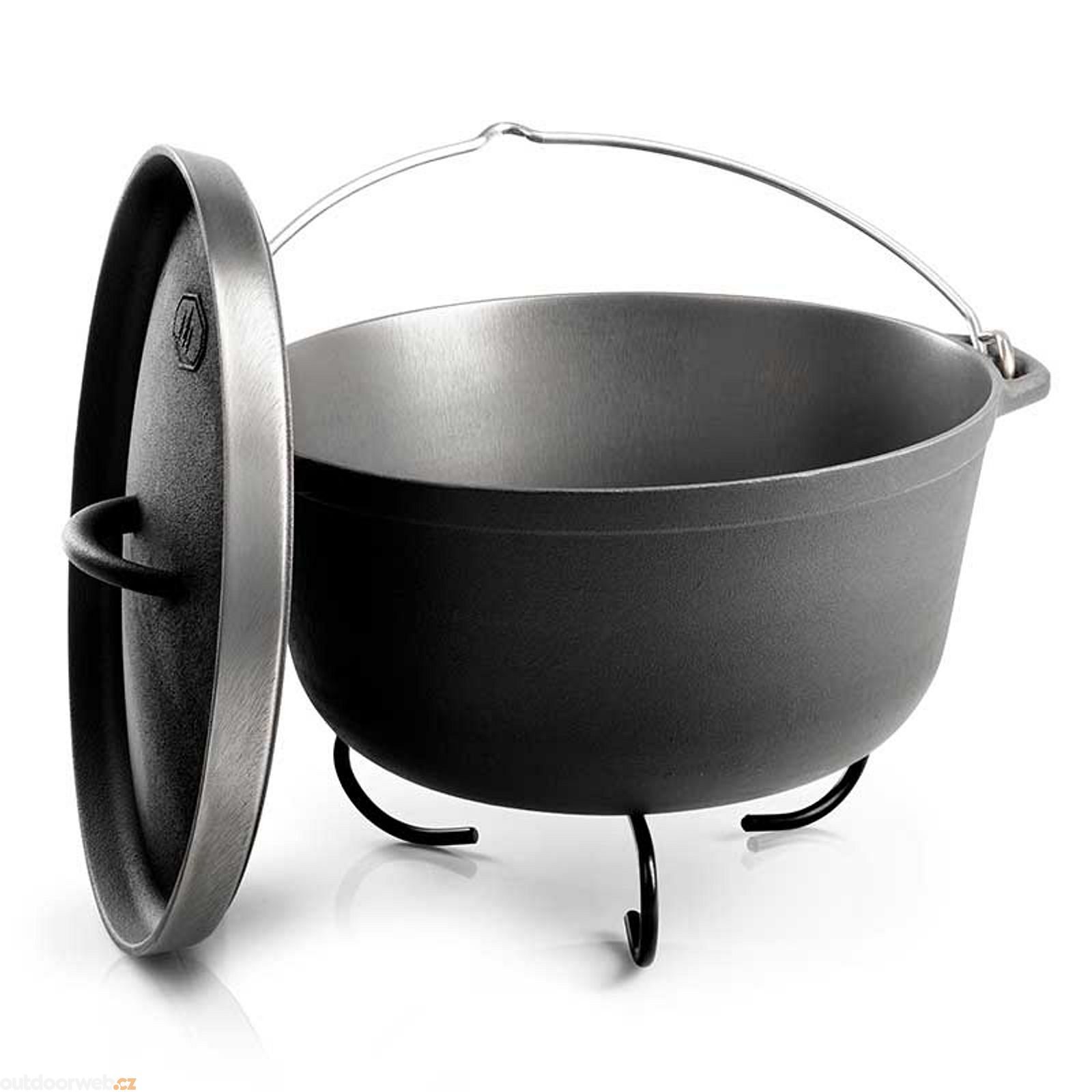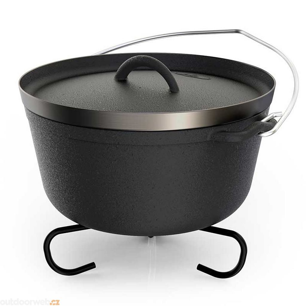 Litin Dutch oven with a volume of 4.7l for real gourmets. The Guidecast Dutch Oven offers excellent heat distribution and is also 30% lighter than conventional cast iron. The nitrided surface of the oven ensures permanent corrosion resistance. Other benefits include a polished base that allows cooking on the stove, fire, oven and induction hob. There are also comfortable handles for easy handling or hanging of your cooking tools. The Dutch Oven can be recessed into hot coals when used on the fire or used as a hanging pot over the fire.