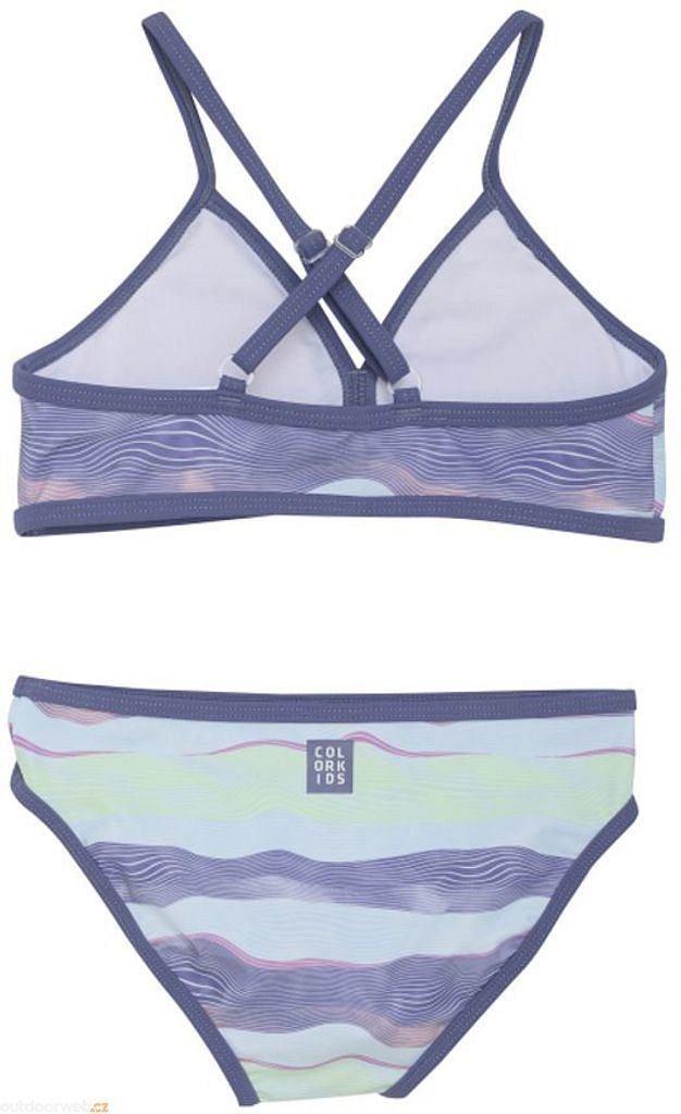 This colourful two-piece swimsuit by Color Kids is the perfect partner for holidays or a dip by the pool. Thanks to the breathable and stretchy material with quick-drying properties, you'll feel comfortable and move easily in them. They are worn over the head and have thin, adjustable straps that are crossed in the back for a great fit.