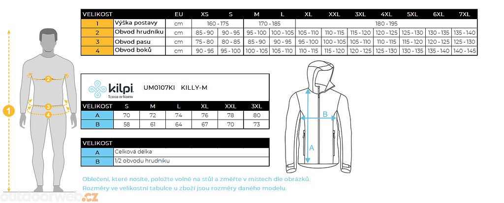 Size charts are for reference only and correspond to body measurements, not clothing sizes! Clothing size charts may vary slightly between collections. Kilpi clothing has a standard fit and corresponds to classic ready-to-wear sizes.