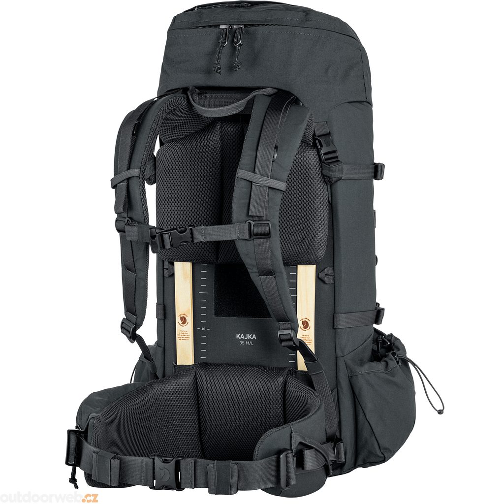 Resilience, high functionality and comfort - the Kajka 35 is an advanced trekking backpack that is praised by hikers around the world. One reason is its FSC-certified birch wood frame construction, which, along with the easily adjustable back length, makes the Kajka a pack designed for carrying heavy loads so you can focus on hiking rather than back pain. Ergonomic shoulder straps and a supportive waist belt with pocket add even more functionality and comfort. Made from durable Vinylon F fabric with recycled nylon reinforcement. Add extra storage space to the Kayka 35 by attaching the Kayka side pockets to the loops on the sides: there are also loops on the front for attaching hiking poles/ice axes. The main compartment has an internal mesh pocket and a full front zippered opening for easy organization and great visibility of contents. The top lid has three zippered pockets and can be detached and used as a crossbody bag. Two compression straps on each side provide even and effective compression while the side pockets remain accessible. Compatible with hydration system. Includes rain cover.
