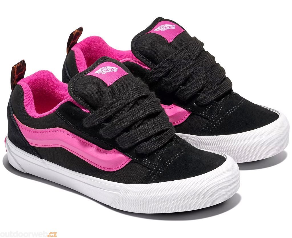 Iconic VANS design with a modern twist for your kids! The Knu Skool sneakers feature a classic silhouette in a children's design that combines timeless black and white colors with comfort and durability.These shoes are ready for your little explorers' everyday adventures.The reinforced upper construction and improved sole ensure exceptional wear resistance and provide stable support for all children's activities, from the school playground to the skate park.The padded tongue and collar, combined with an anatomically shaped insole, create perfect comfort for sensitive children's feet, allowing for all-day wear without fatigue.