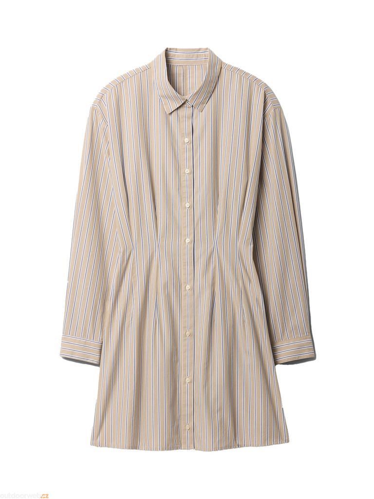 • The dress has a classic collar, full-length button fastening and long sleeves finished with buttoned cuffs.