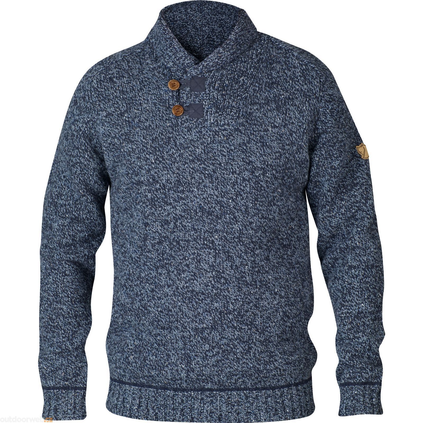 Knitted sweater in lambswool blend with classic shawl collar and lightly marbled yarn. Perfect for everyday wear over a shirt or as a warm mid-layer for an autumn/winter walk.
