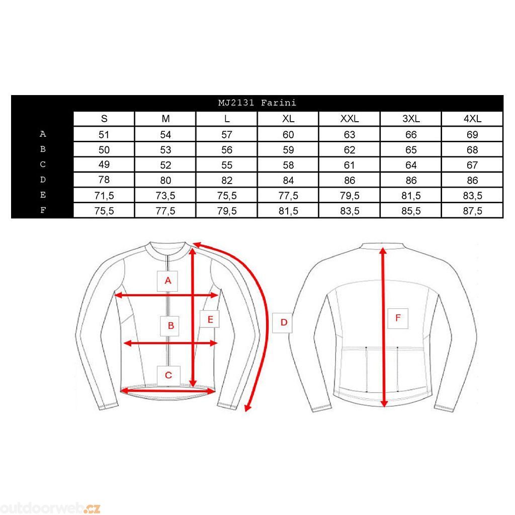 | Hruď | 94 | 100 | 106 | 112 | 118 | 124 | 130 | 136 | 142 |