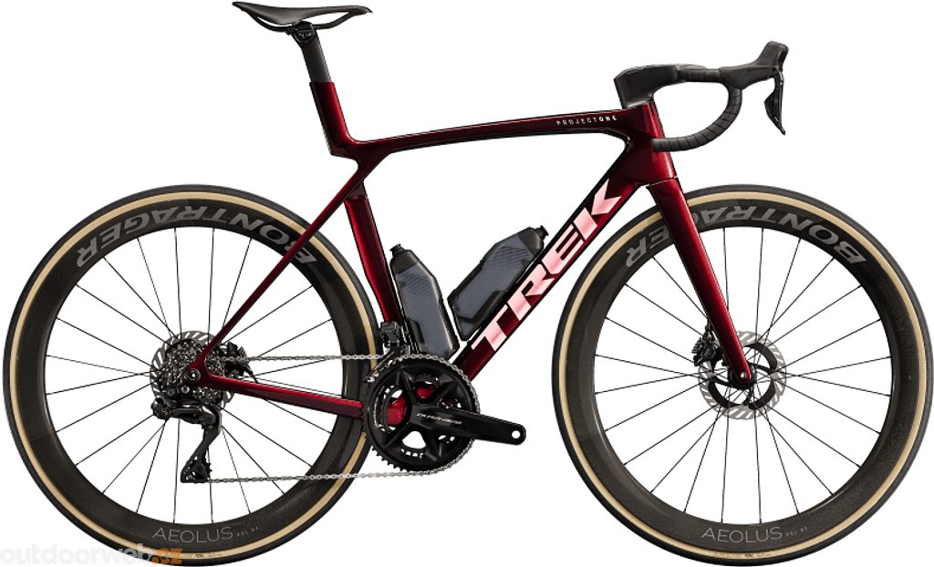 Thanks to its light weight and aerodynamic speed, the Madone SLR 9 Gen 8 dominates all roads. It's made from our top-of-the-line 900 series OCLV carbon, which is not only incredibly lightweight, but also allows for aerodynamic tube shaping for lightning fast downhill and straight-line riding. IsoFlow frame technology is lightweight, so the Madone's comfort doesn't take a toll on speed. This bike will take you to the podium thanks to its top-of-the-line Shimano Dura-Ace Di2 drivetrain, carbon wheels, one-piece Trek Aero RSL carbon handlebar and stem combo, and aerodynamic RSL tubes and baskets that minimize drag.
