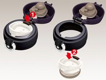 ![]() | The practical design of the thermos cap and seal allows for easy maintenance and thorough cleaning. Simply press the safety catch (1) to slide the drinking spout out of the cap (2). |