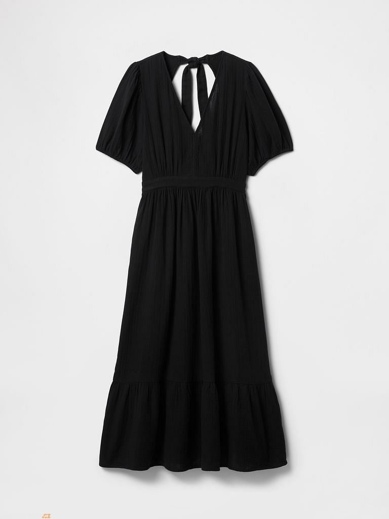 Light and airy midi dress in softly crinkled cotton gauze is perfect for sunny days.