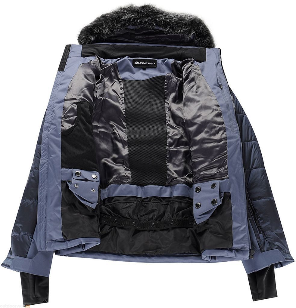The jacket features a detachable hood, fur trim and snow skirt, practical pockets including a mesh pocket for glasses and a phone pocket, underarm ventilation and cuffs with thumb holes for maximum comfort. Stylish details, modern prints, and high-quality YKK zippers complement the elegant look and high functionality.