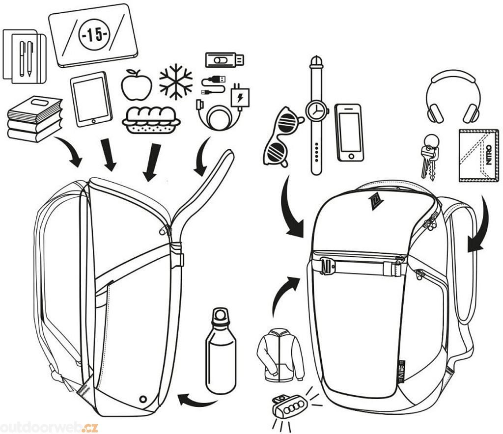 This spacious city backpack is perfectly designed for everyday use – whether you're heading to the office, school, or sports activities. It stands out for its adaptability thanks to a removable clothing organiser, allowing you to easily transform the backpack for weekend trips. It features a dedicated laptop compartment and several smaller pockets for organising chargers, a mouse, cables, and other accessories.