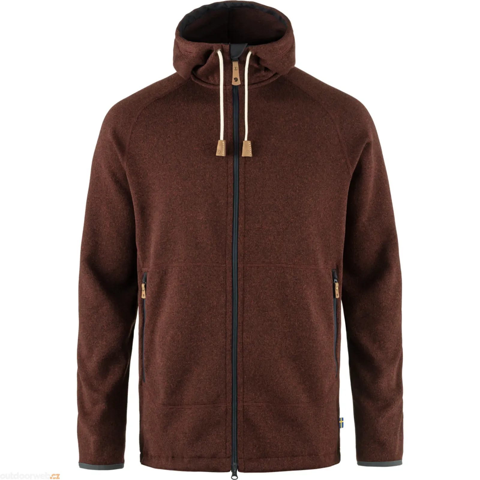 How to choose the right sizeWarm and cosy fleece jacket with a knitted exterior and a soft brushed inside. Perfect as an insulating mid layer under a shell jacket on autumn or winter adventures, and just as comfortable for long afternoons with a good book in front of the fire. It has a fixed hood with a drawcord adjustment and the zipper at the front has a protective flap in G-1000 original that protects the chin. The elbows, hem, pockets and inside of the edge of the hood also have G-1000 for extra durability. Two spacious pockets with zippers. Elastic binding at the sleeve cuffs and drawcord adjustment at the hem. The fleece and mesh lining in the pockets are made from recycled polyester and produced using an environmentally friendly process that both spins and dyes the fibres at the same time. This leads to much lower levels of water and energy consumption compared to traditional dyeing techniques.