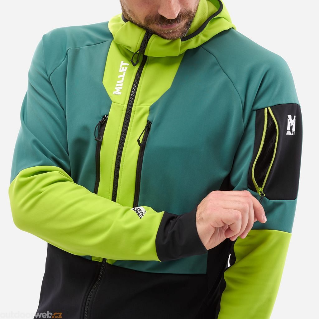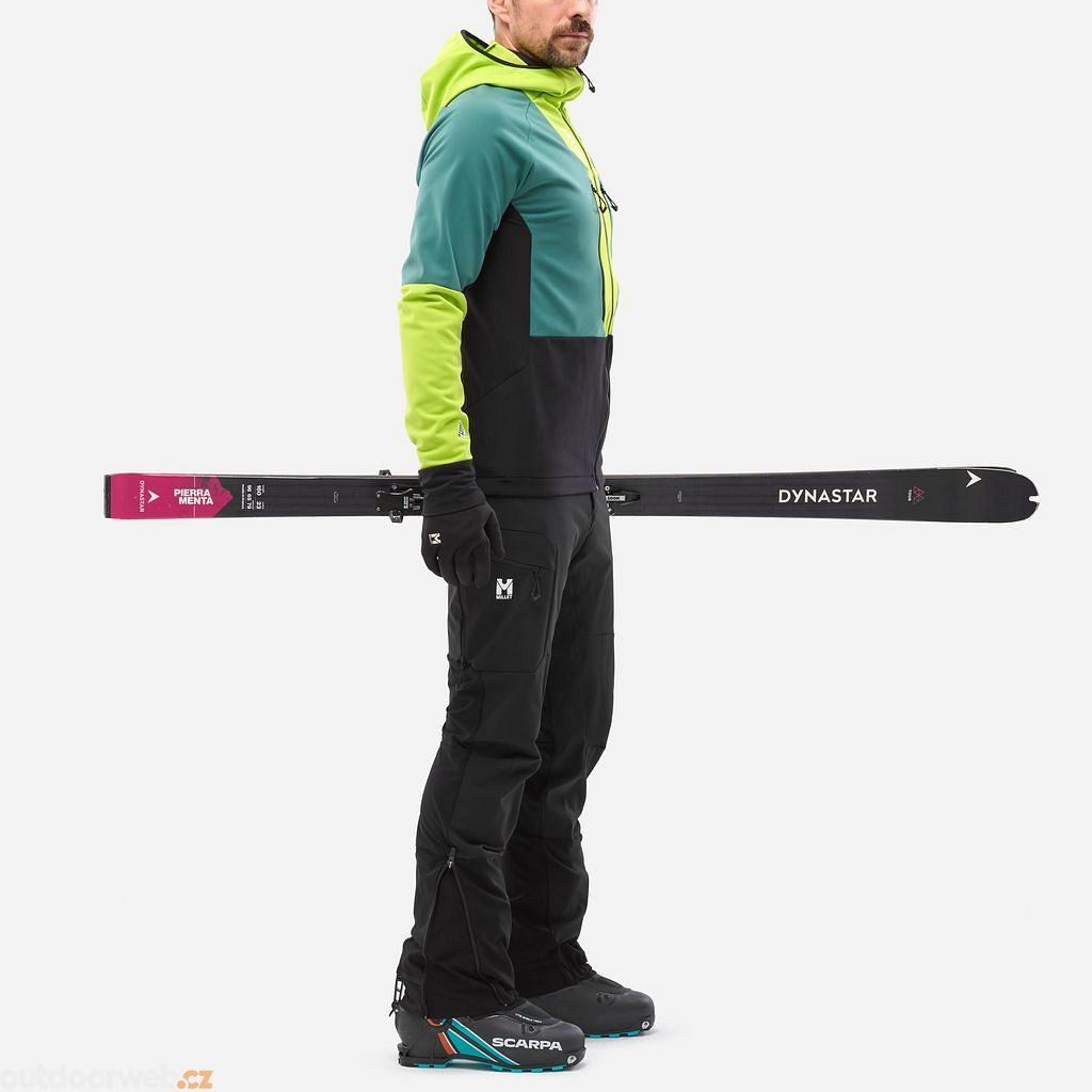 The Millet Pierra Ment Hoodie is a specialized softshell jacket developed primarily for ski mountaineering with an emphasis on optimal thermoregulation.