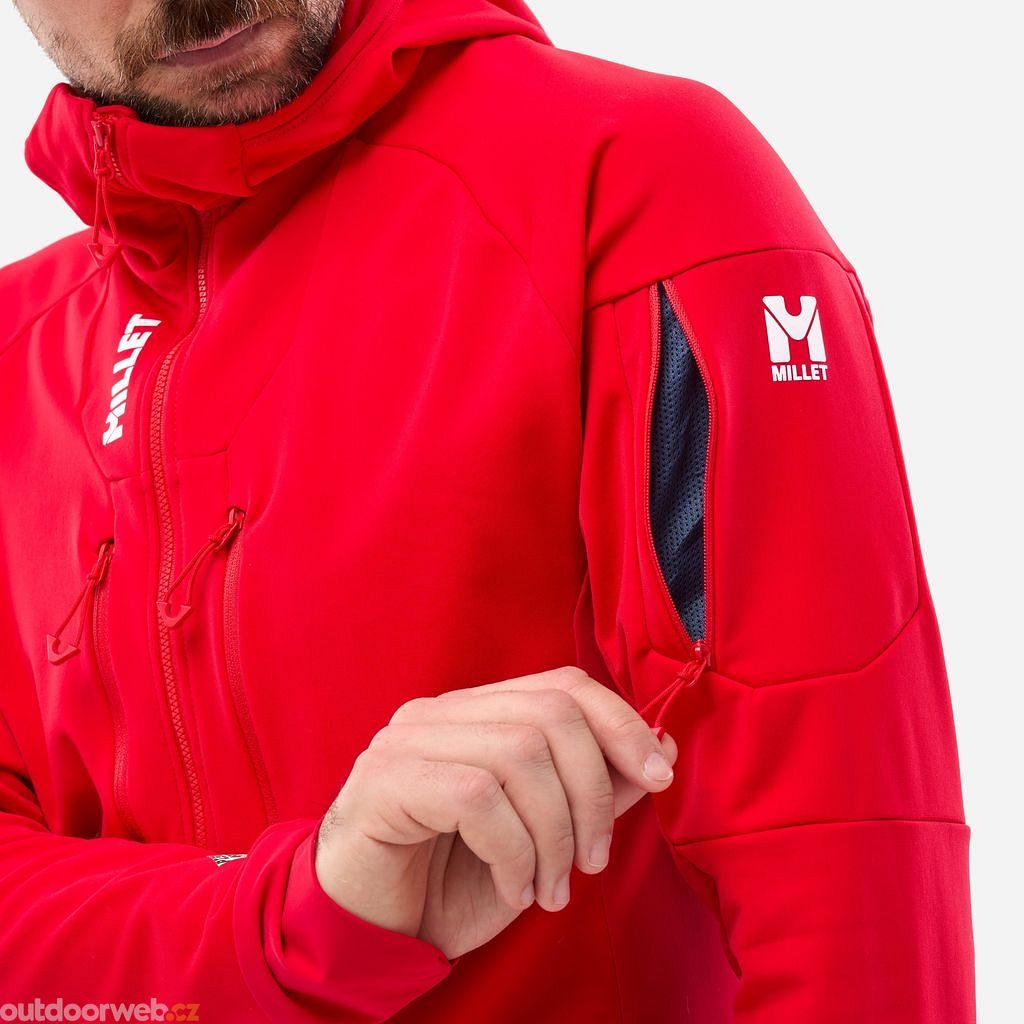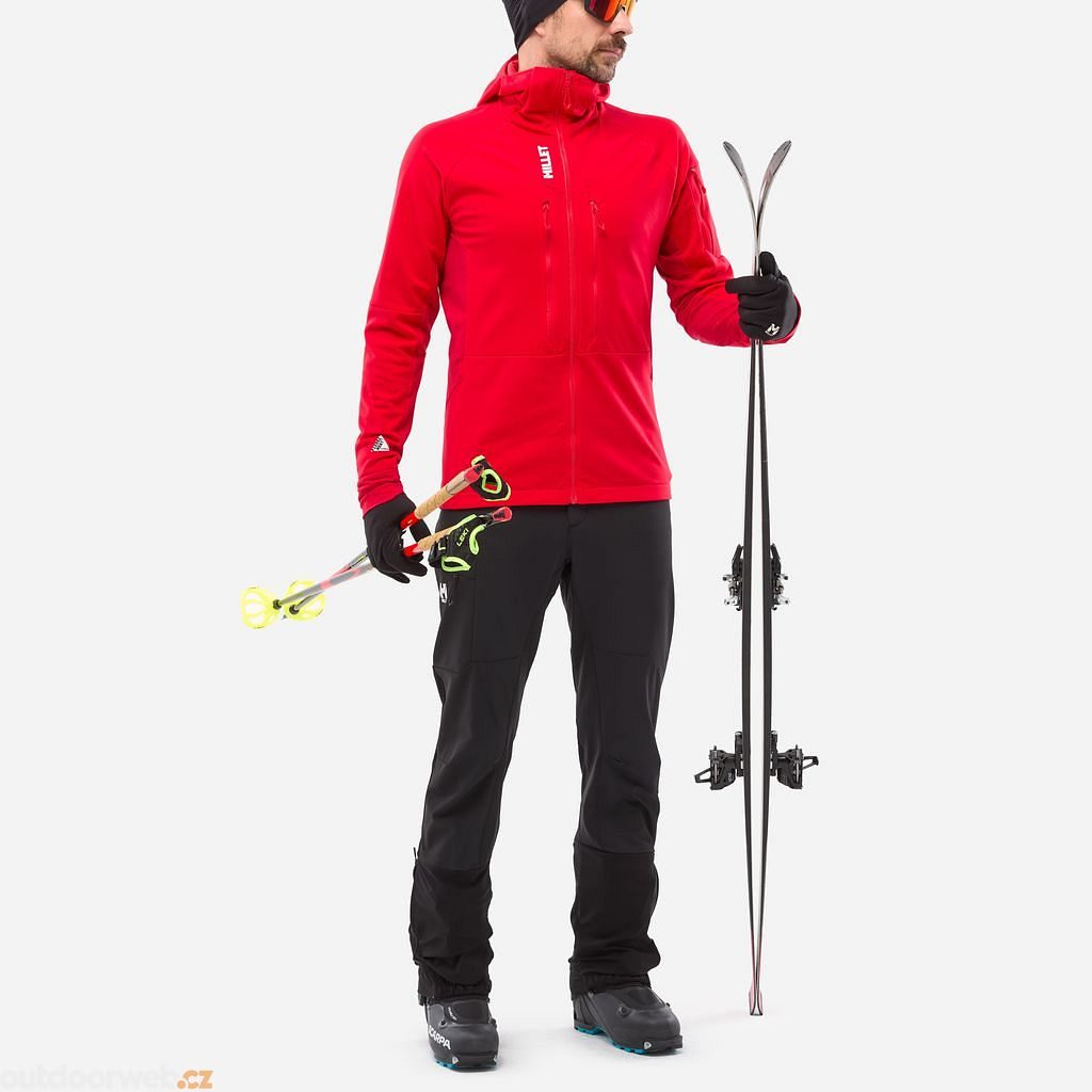 The Millet Pierra Ment Hoodie is a specialized softshell jacket developed primarily for ski mountaineering with an emphasis on optimal thermoregulation.