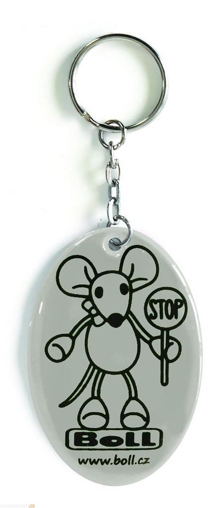 The Reflective Pendant from Boll is a highly reflective keyring with a picture of Bollie the mouse.