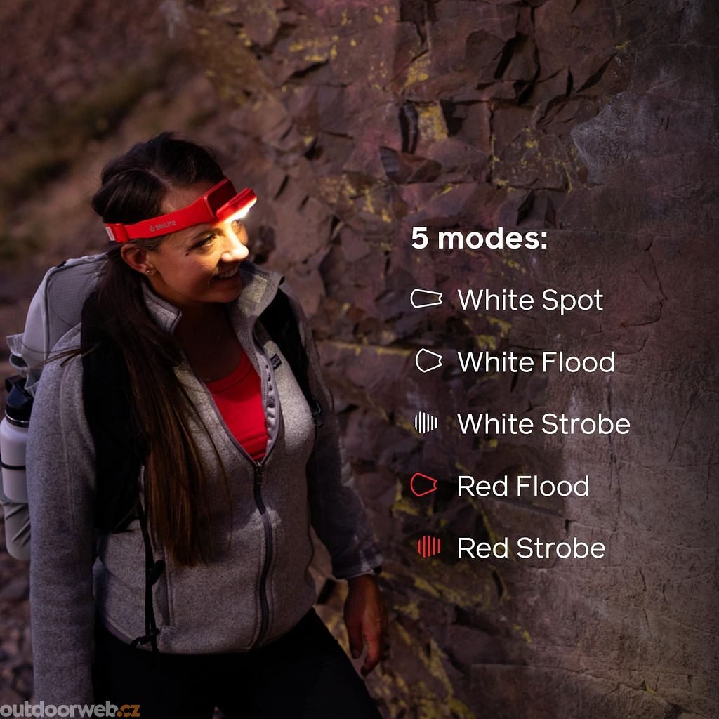 Lighting modes: White Spot, White Strobe, White Flood, Red Flood, Red Strobe
