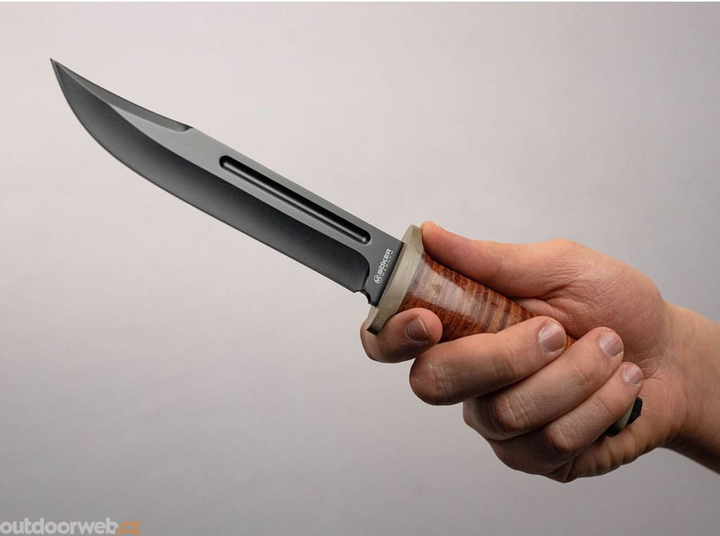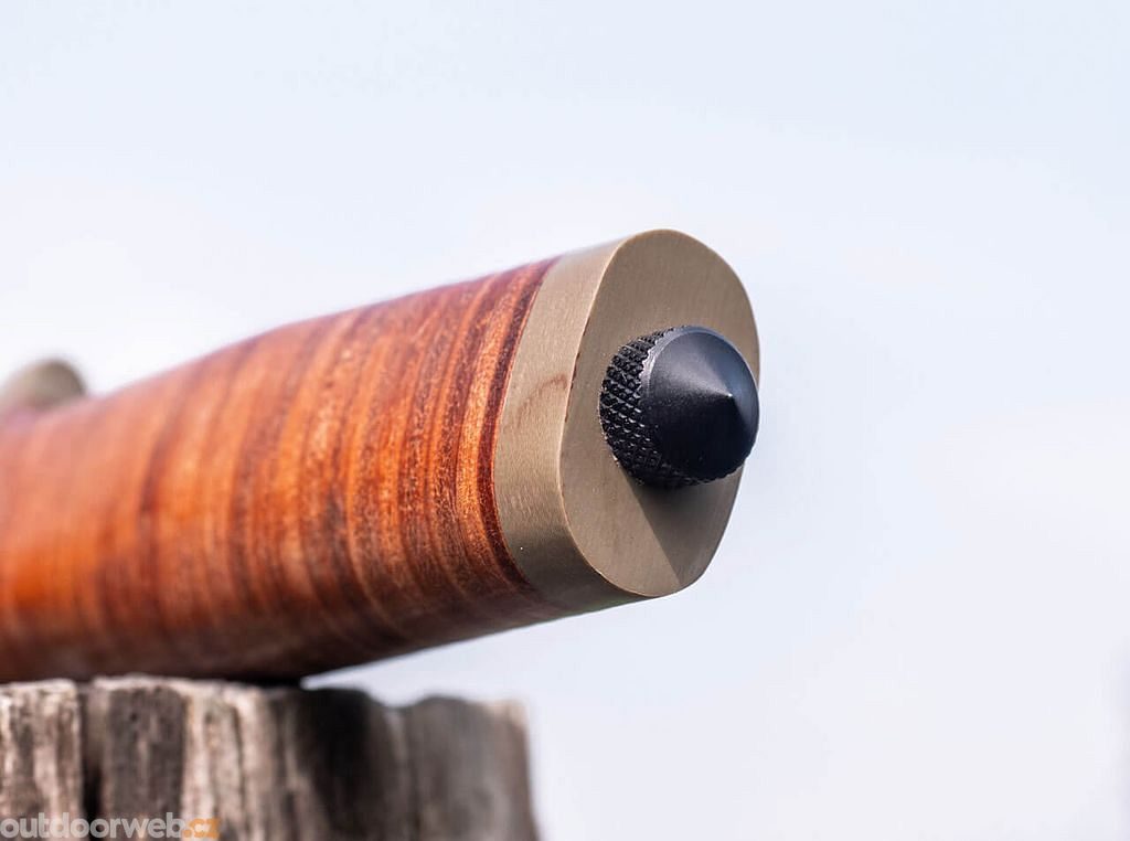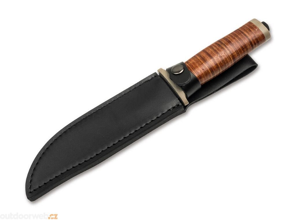 The result is a significant weight reduction and, combined with the brown leather on the handle and the black coated blade, the knife takes on a modern and attractive look.