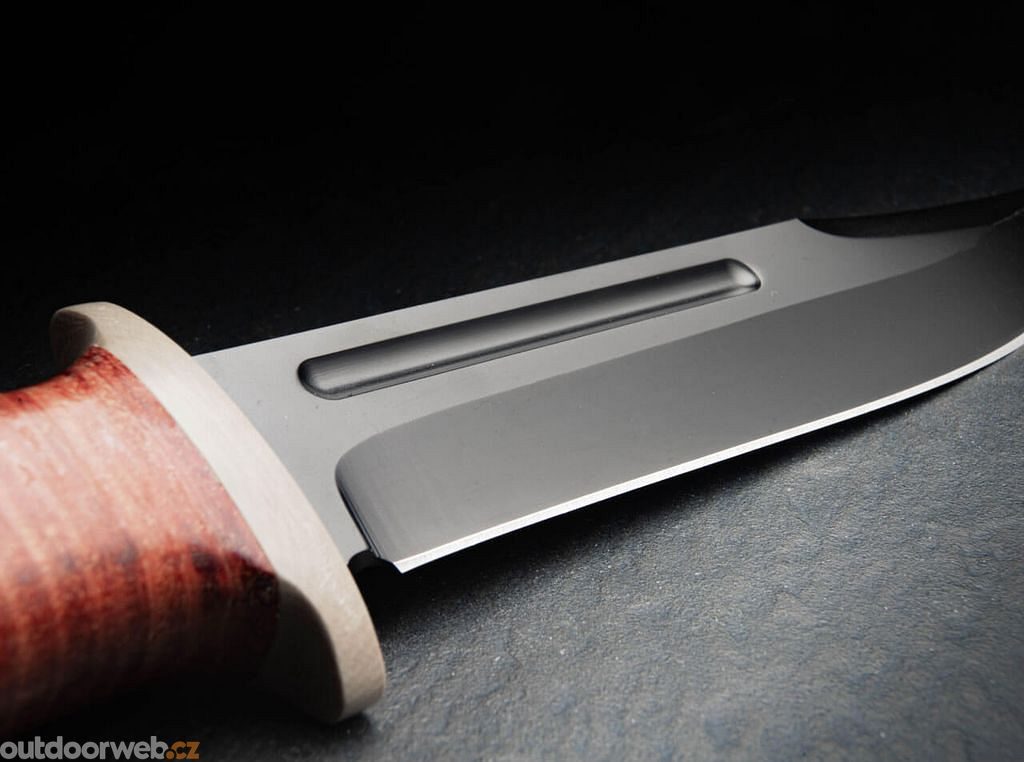 - The impressive stainless steel blade has a distinctive hollow groove.