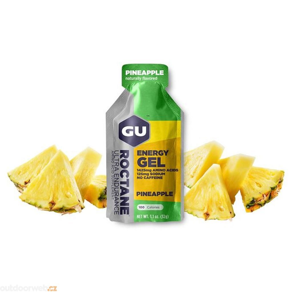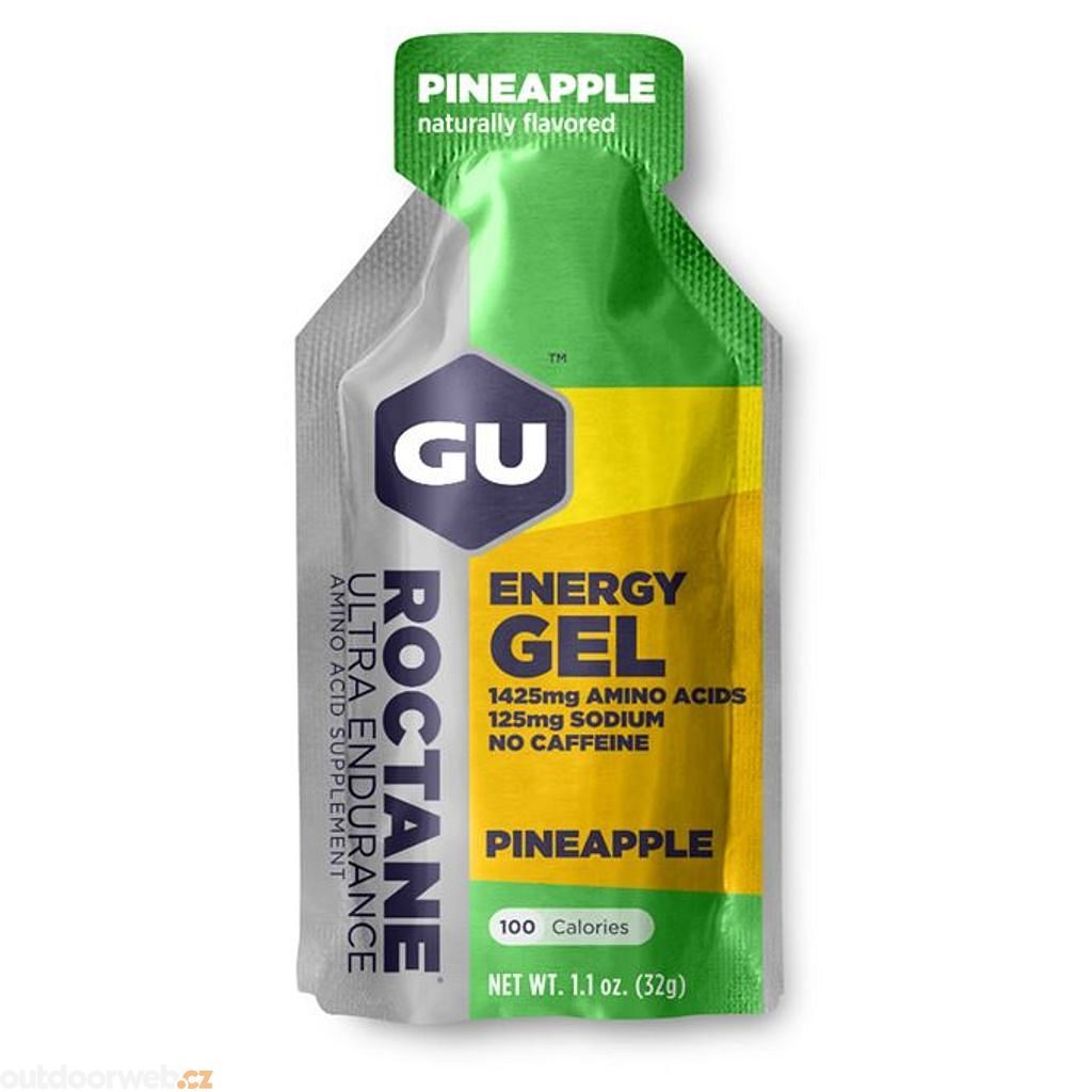 - Compared to GU gel, it contains a lot more essential amino acids that the body can't synthesize on its own, but needs to protect muscle fibers during physical exercise. Ornithine alpha-ketaglutarate (OKG) blocks unwanted catabolic processes (muscle cramps).