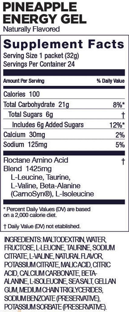 ROCTANE energy gel contains 3x more BCAAs and 2x more electrolytes compared to our original energy gels. They also contain the amino acids taurine (to help maintain cardiac contractility and improve cardiac output during long workouts) and beta-alanine (to help maintain a stable ph inside cells, preventing cell damage).