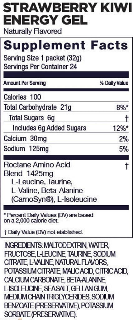 ROCTANE energy gel contains 3x more BCAAs and 2x more electrolytes compared to our original energy gels. They also contain the amino acids taurine (to help maintain cardiac contractility and improve cardiac output during long workouts) and beta-alanine (to help maintain a stable ph inside cells, preventing cell damage).