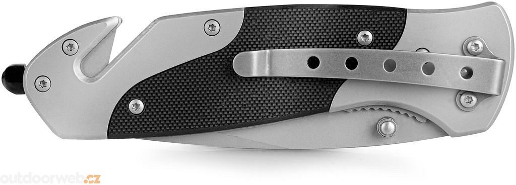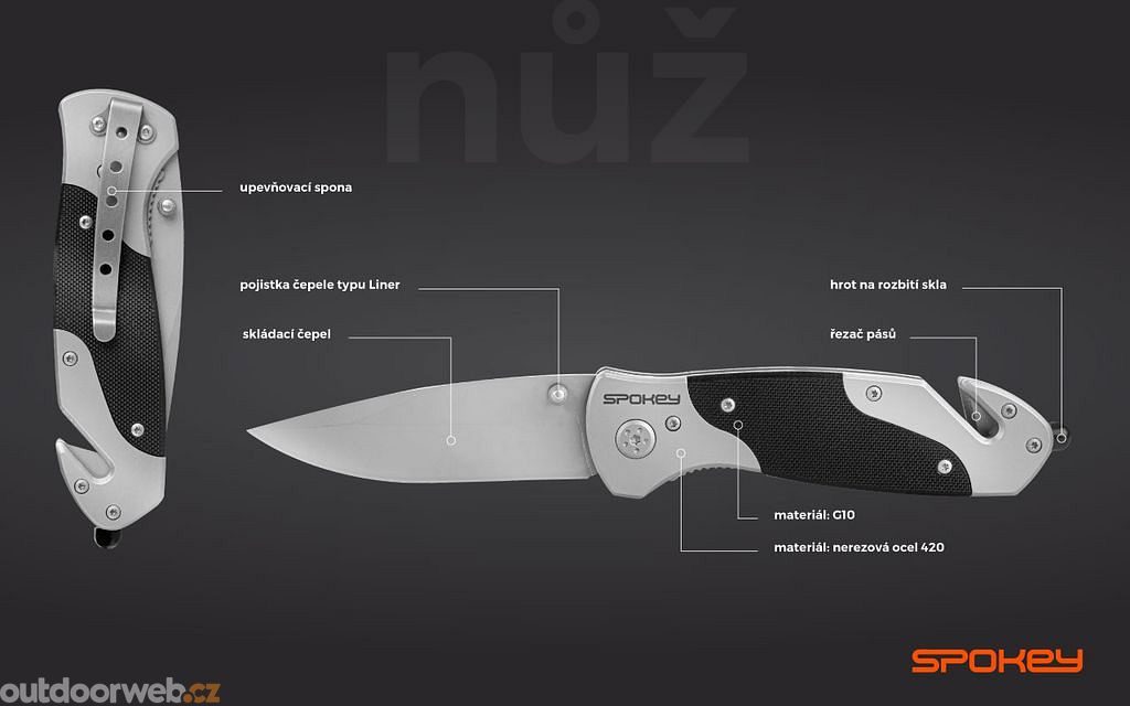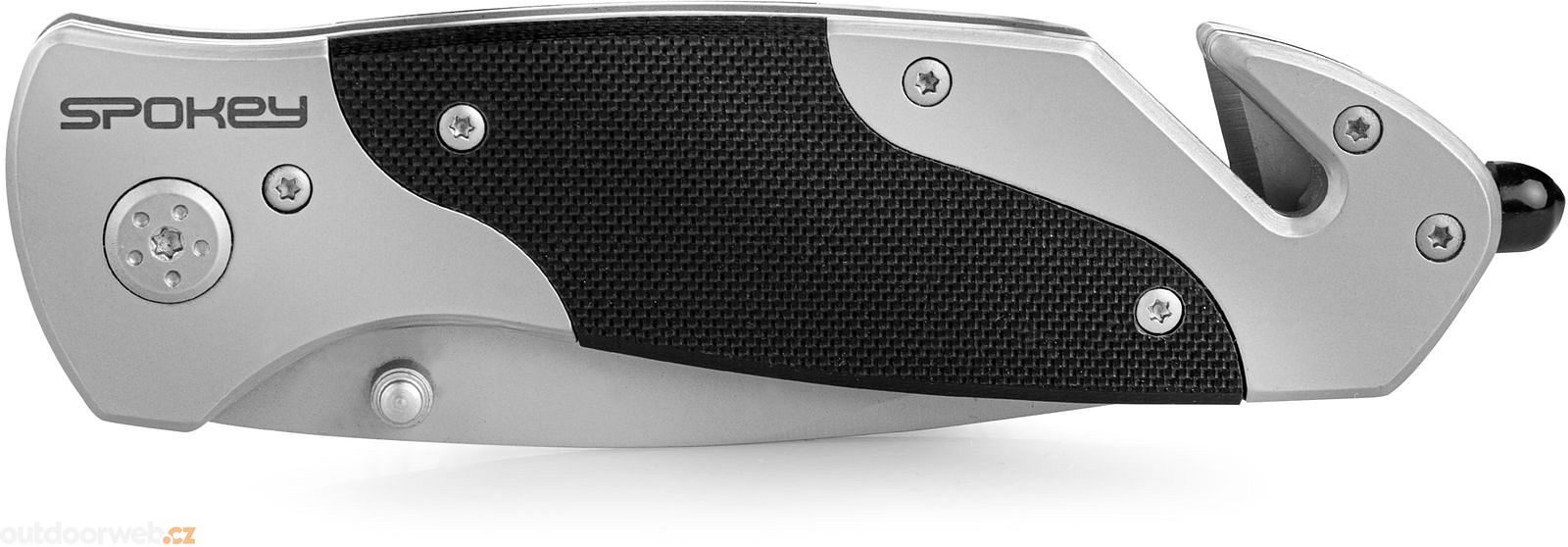 Multifunctional folding knife SPOKEY SPIDER - stainless steel safety pocket knife. A versatile helper equipped with a seatbelt cutter and glass breaker tip, ideal for outdoor activities and car emergencies.