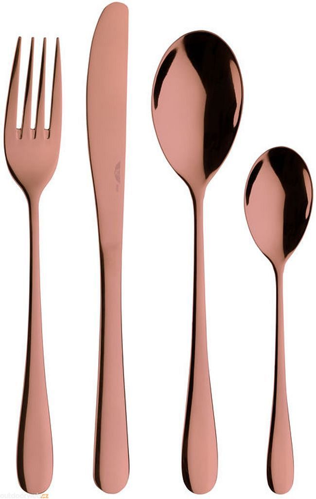 With the 24-piece Princess Amber cutlery set from Pintinox, you can bring a dreamy shade of amber to your table, reminiscent of warm summer days by the sea. The simple shape of the cutlery accentuates this unusual colour and creates a harmonious overall look. This well-made set, which always consists of 6 coffee spoons, table forks, knives and spoons, will enrich your table for a long time.