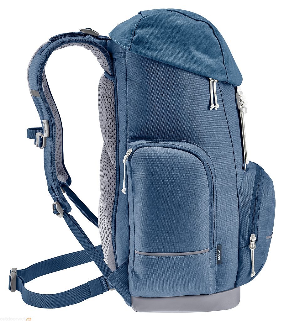 The Scula school backpack by deuter is a retro-style backpack with a Contact back system that evenly distributes the load of school supplies. Wearing comfort is further enhanced by the ergonomically shaped shoulder straps, adjustable chest belt and removable waist belt. The main compartment is complemented by organizational compartments for school supplies and tablet.