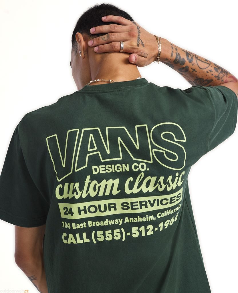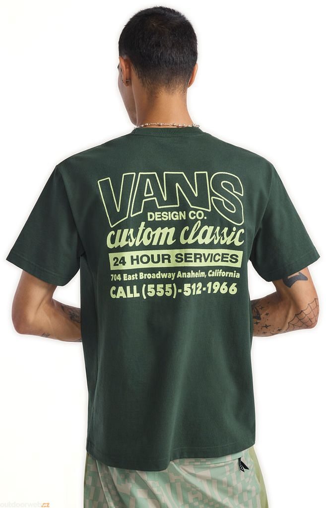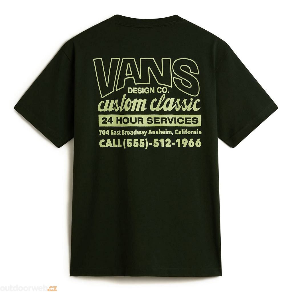 Wear a piece of Vans history with the Shop Front T-shirt, which pays tribute to the company's first factory. This classic-fit, short-sleeved, crew neck tee features a screen-printed graphic with the Vans® logo on the front and a retro advertisement with the factory address on the back.