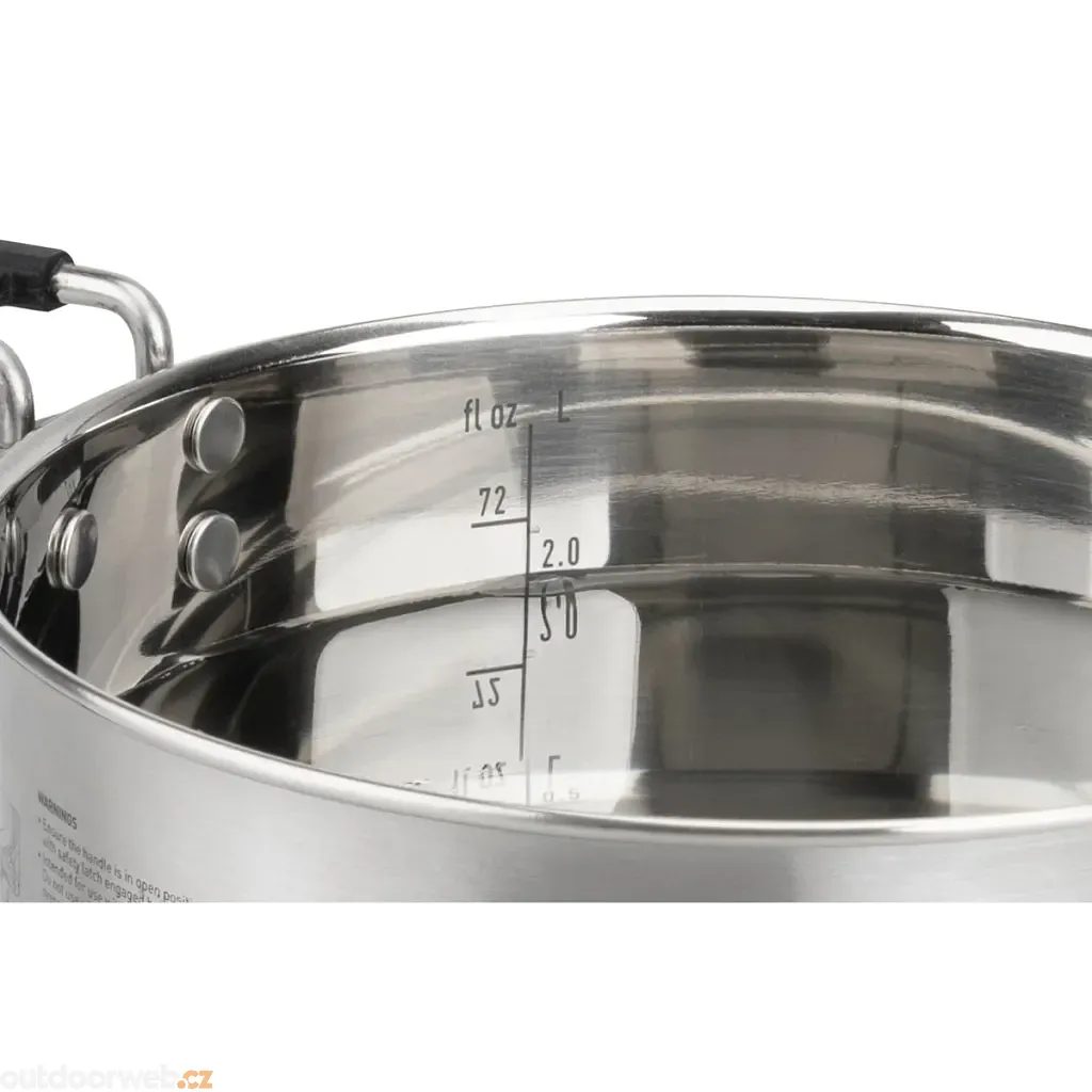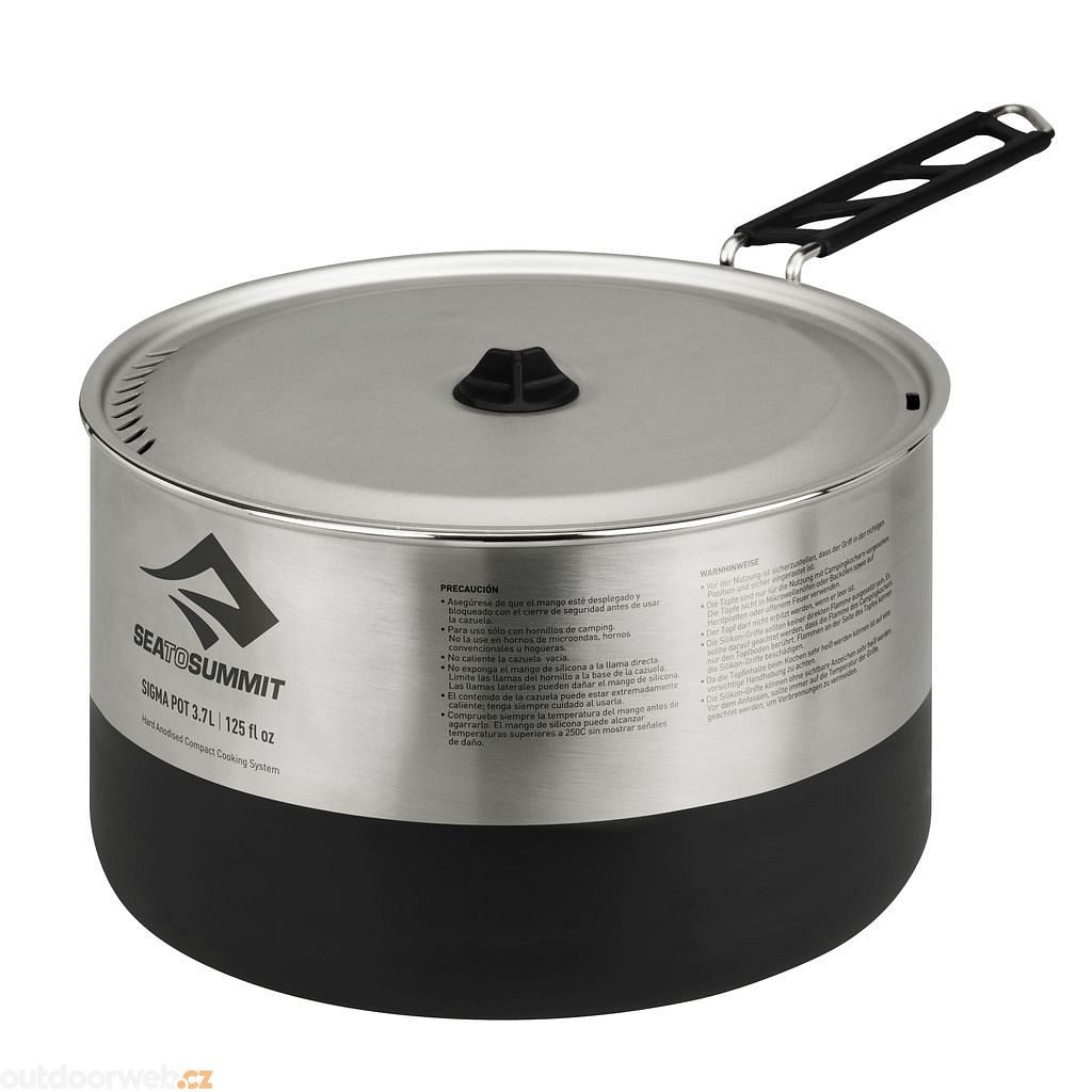 Sea To Summit's 3.7 litre stainless steel pot is suitable for cooking for one or two people. The lid is made from lightweight aluminium, has a strainer for easy water draining and a silicone grip for hanging the lid on the edge of the pot.