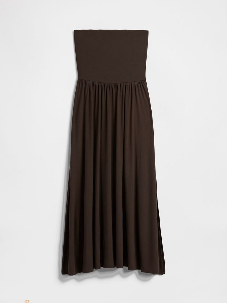 Women's maxi dress in a soft stretch knit - strapless combines comfort, femininity and clean design in a versatile piece that stands out both during the day and on evening occasions.