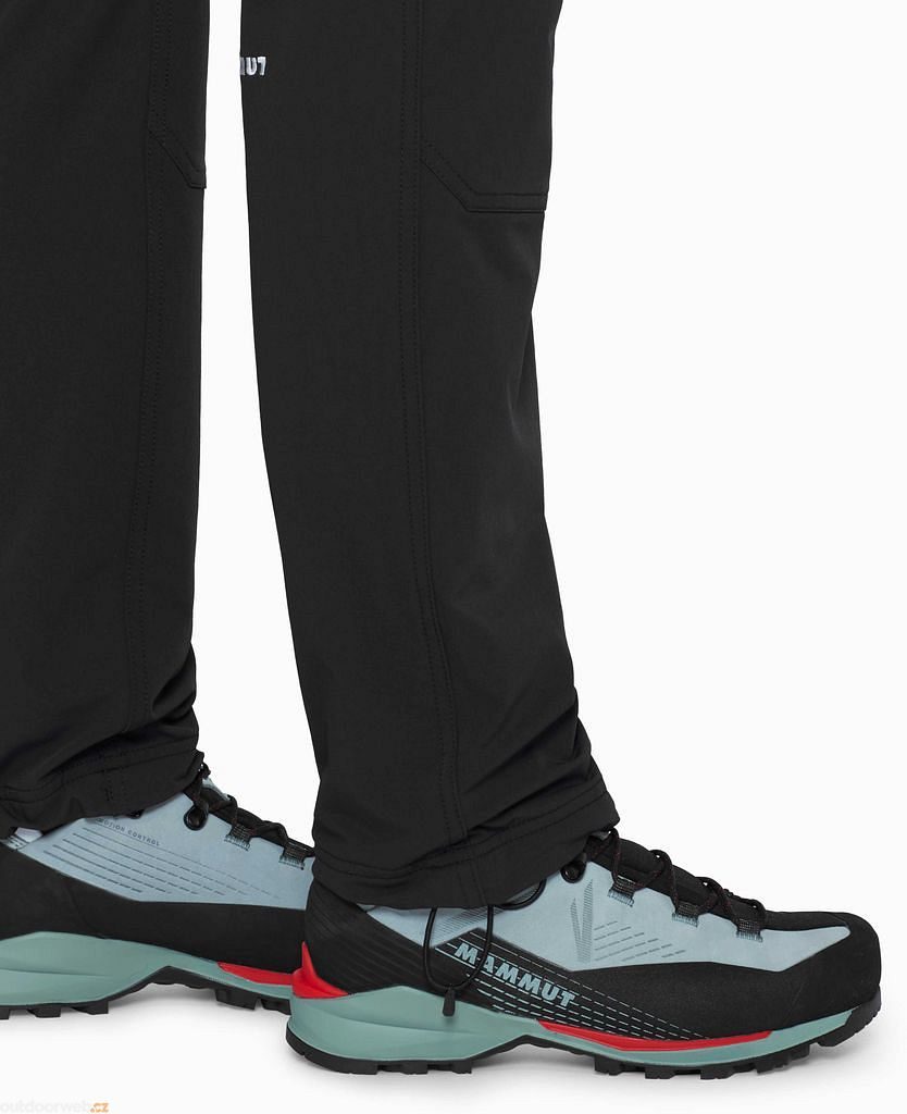 The highly abrasion-resistant Mammut FLEXGUARD Active softshell easily withstands rock abrasion. Four-way stretch combined with pre-shaped knees guarantees unrestricted freedom of movement in every situation. - Practicality for every season