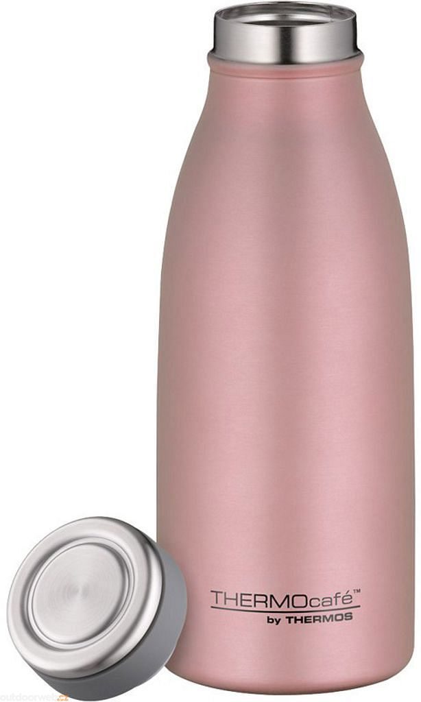 The THERMOcafé thermo bottle is a stainless steel vacuum insulated bottle with a narrow neck and screw cap. The thermos is designed for both cold and hot drinks.