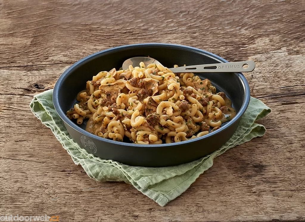 A pleasant meat dish with visually noticeable ingredients; subtly but subtly spiced, which you will quickly like; prepared by adding boiling water to the original bag; 1.5 servings, 160 g (in transport state), 640 g (finished dish), 667 kcal.