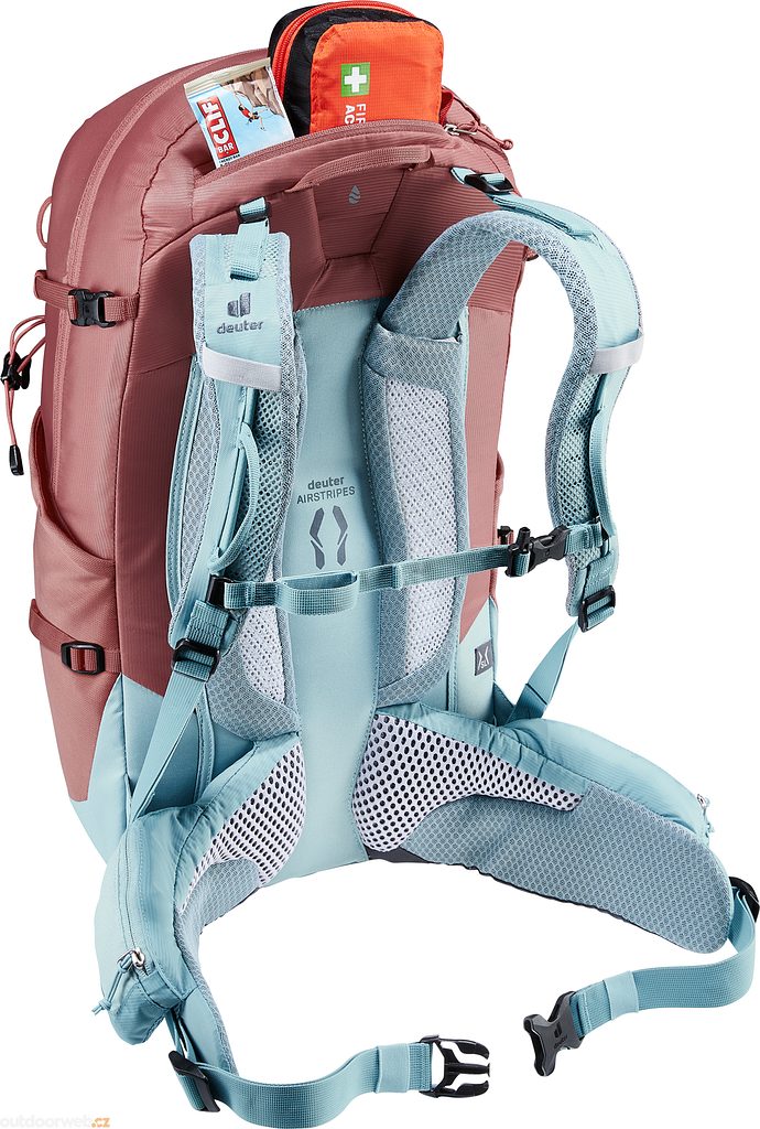 - The reduced contact area of the deuter Airstripes back system and the airy, quick-drying Air Spacer Mesh on the back ensure maximum airflow.